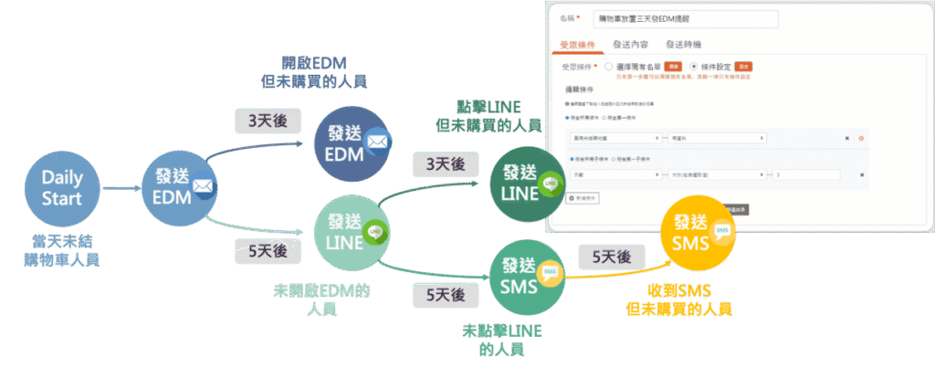 現代消費者期望量身定制的體驗,行銷自動化能幫助團隊根據潛在客戶的興趣和特徵提供個性化內容,從而提高參與度並促進轉化。行銷團隊可以依據不同管道(如推薦商品、LINE推播訊息、電子郵件等)提供相應的內容。